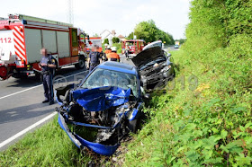 Der 68-jährige Fahrer eines Audis befuhr die Rimparer Straße mit überhöhter Geschwindigkeit in Richtung Güntersleben. Dabei überfuhr er zunächst mit der linken Fahrzeugseite die Verkehrsinsel und kam anschließend mit dem rechten Vorderrad gegen den Bordstein. Nach diesem Kontakt lenkte er nach links in den Gegenverkehr, wo er mit einem entgegenkommenden Peugeot frontal zusammen stieß. Beide Fahrzeuge wurden in den Graben geschleudert. Die Beifahrerin im Audi wurde mit einem Rettungshubschrauber ins Krankenhaus verbracht. Der Unfallverursacher und die beiden Insassen des Peugeot kamen mit einem Rettungswagen ins Krankenhaus.